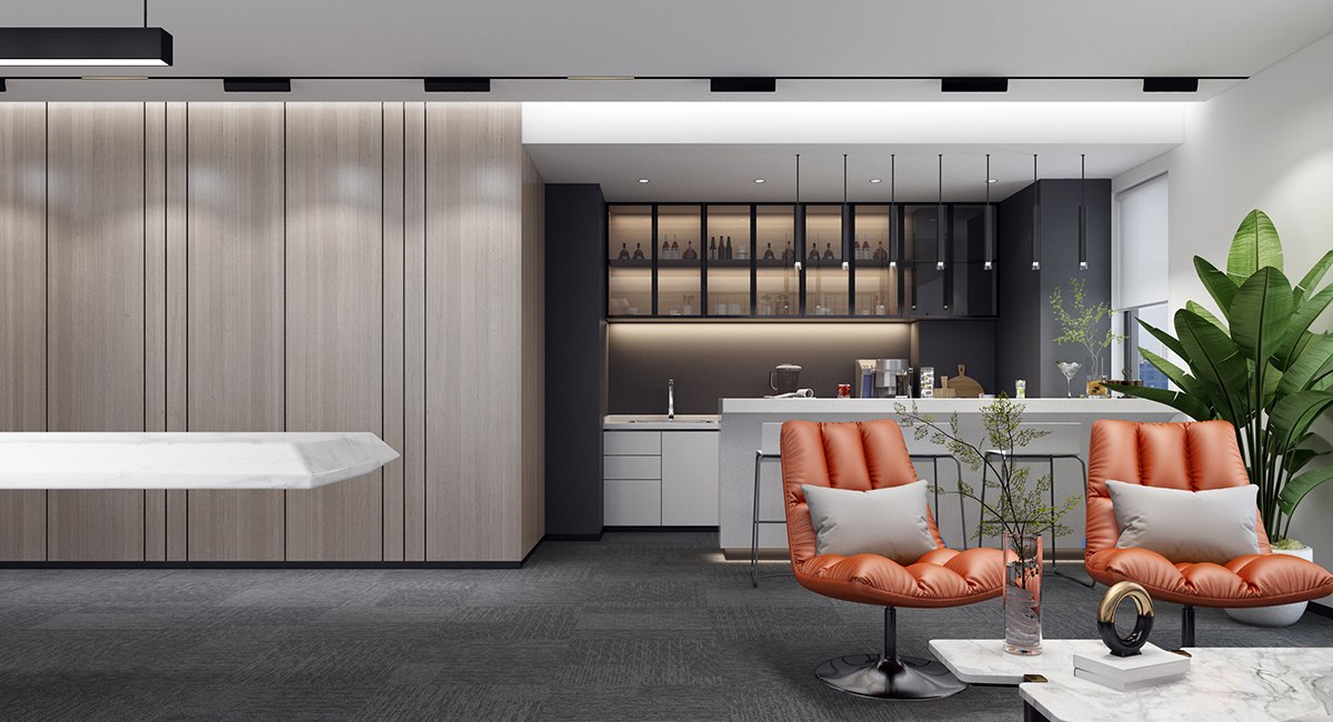 天然的材料(如吸音織物和木板/門)與嵌入在涂有聚氨酯涂料的面板連接槽中的硬線LED燈具很好地保持了平衡。即使在充滿張力的空間中,它也會通過在藝術(shù)品上添加一些有機特征來賦予其柔軟感。